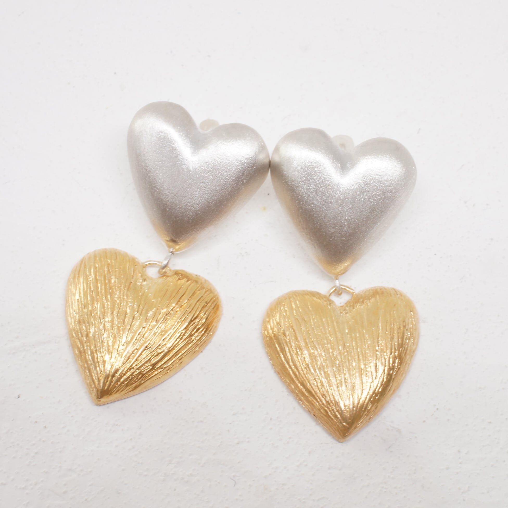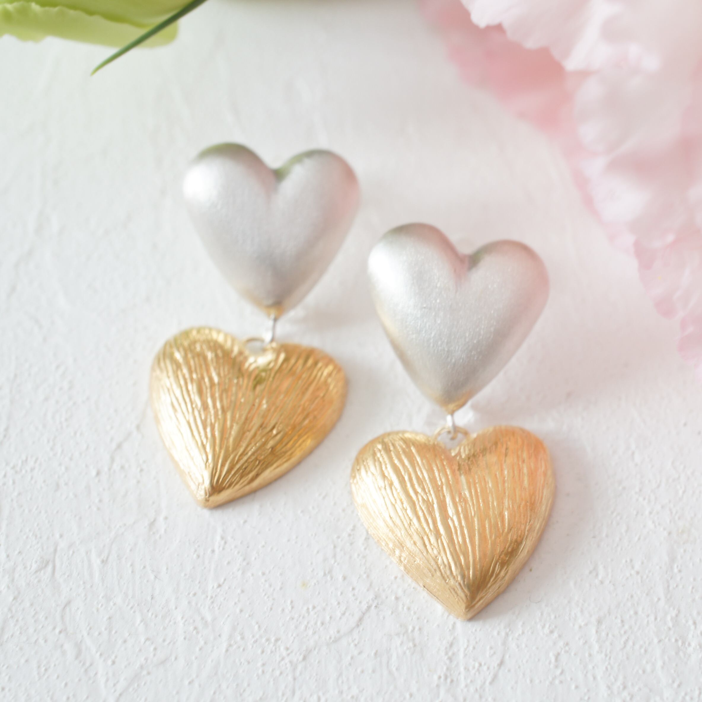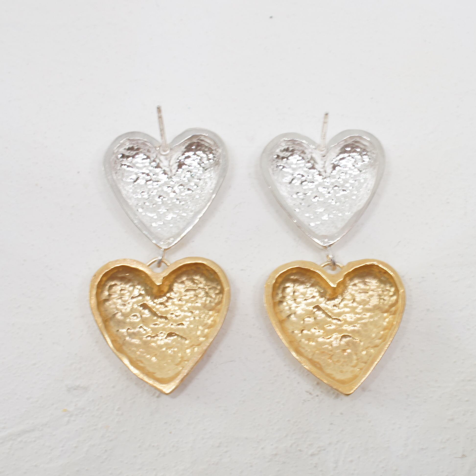 大ぶりなハートを2連であしらったピアス。