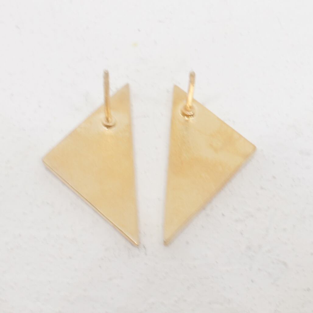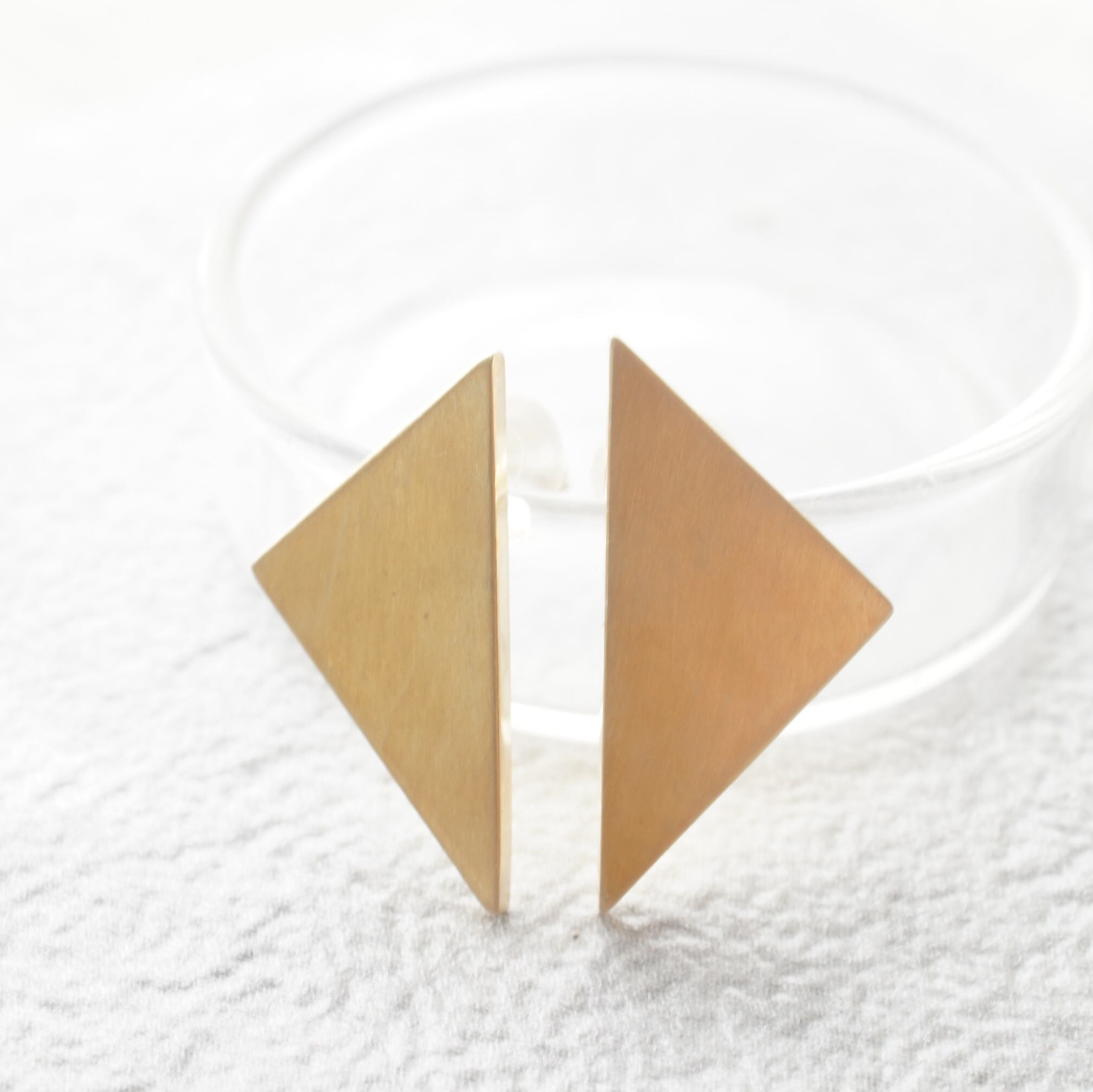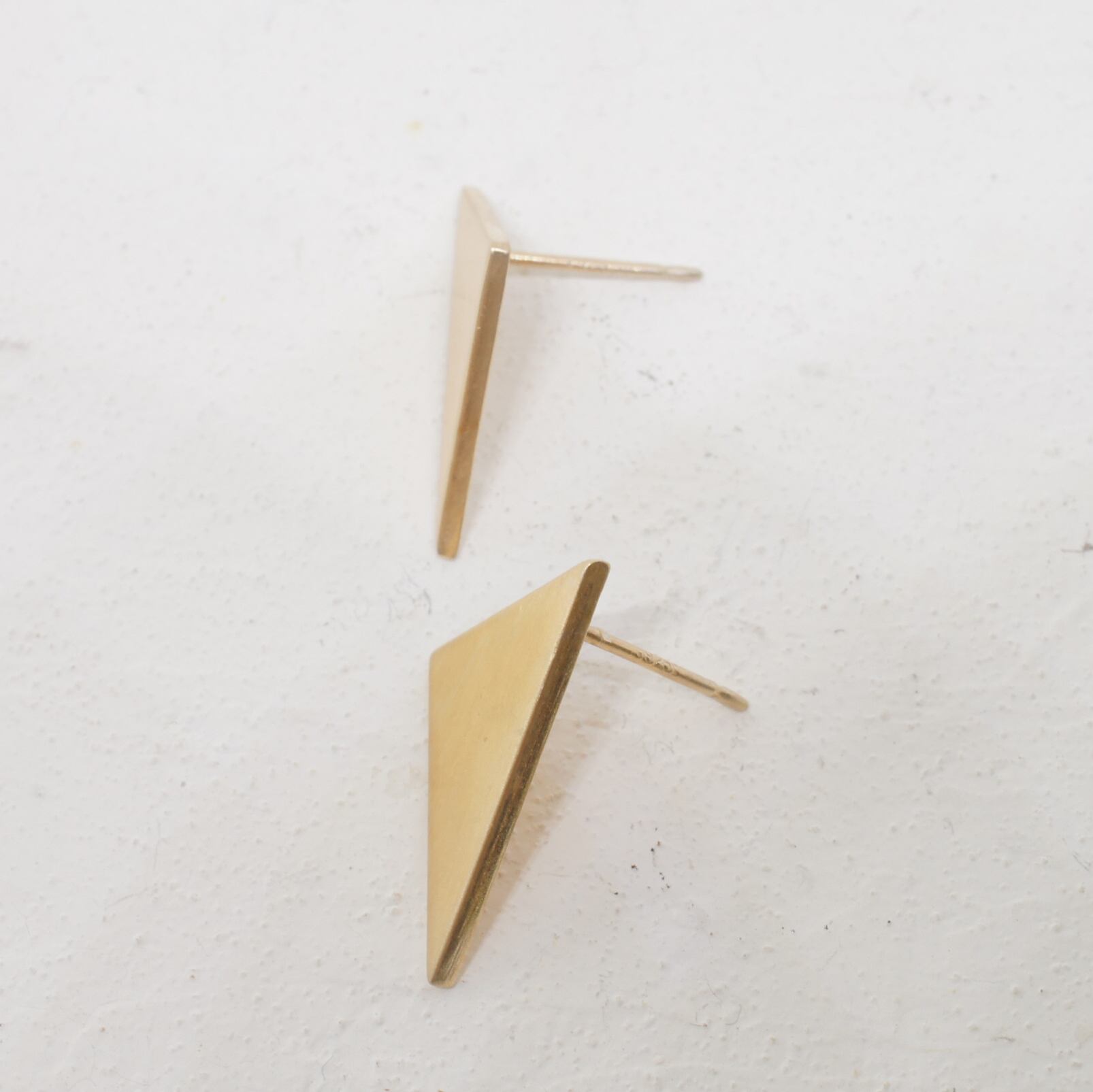 洗練されたデザインのアシンメトリーピアス 三角マット ゴールド。